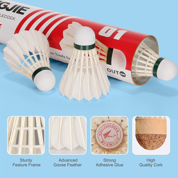 Goose Feather Badminton Shuttlecocks Birdies, 12 Pack Hight Speed Training Badminton Balls with Great Stability for Indoor Outdoor