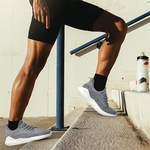 Walking Shoes for Men Sneakers – Slip on Memory Foam Running Tennis Shoes for Athletic Workout Gym Indoor Outdoor Lightweight Breathable Casual Sneakers Mix Grey