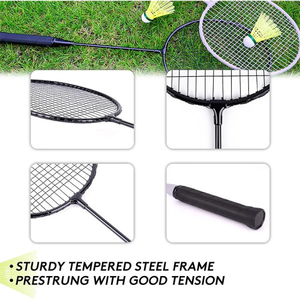 Badminton Rackets Set of 4 for Outdoor Backyard Games, Including 4 Rackets, 6 Nylon Badminton Shuttlecocks, Lightweight Badminton Racquets for Beginners