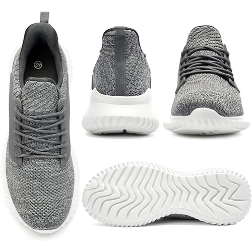 Walking Shoes for Men Sneakers – Slip on Memory Foam Running Tennis Shoes for Athletic Workout Gym Indoor Outdoor Lightweight Breathable Casual Sneakers Mix Grey