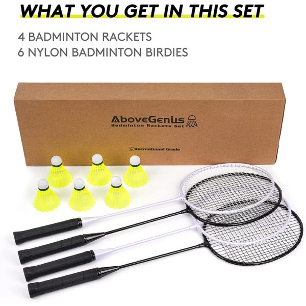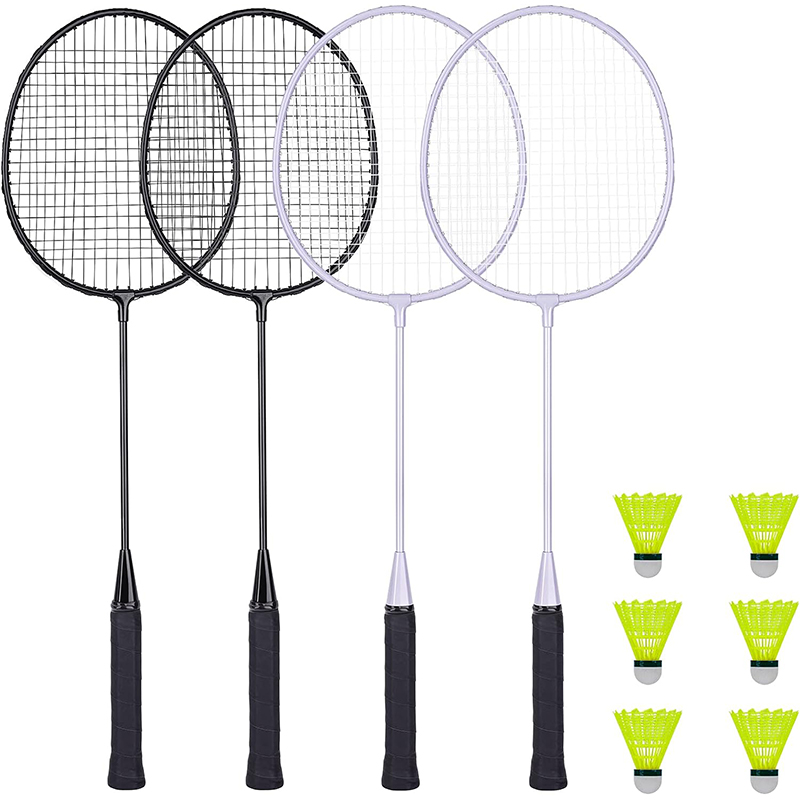 Badminton Rackets Set of 4 for Outdoor Backyard Games, Including 4 Rackets, 6 Nylon Badminton Shuttlecocks, Lightweight Badminton Racquets for Beginners