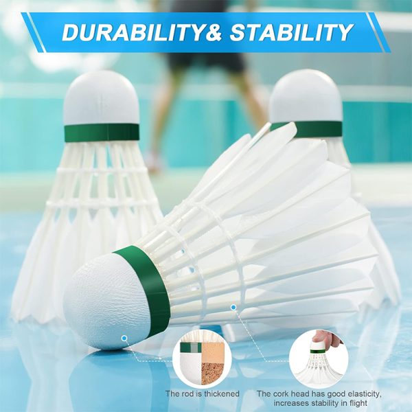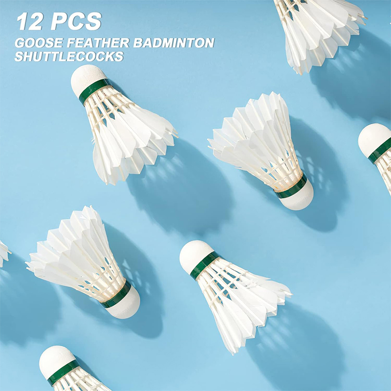 Goose Feather Badminton Shuttlecocks Birdies, 12 Pack Hight Speed Training Badminton Balls with Great Stability for Indoor Outdoor